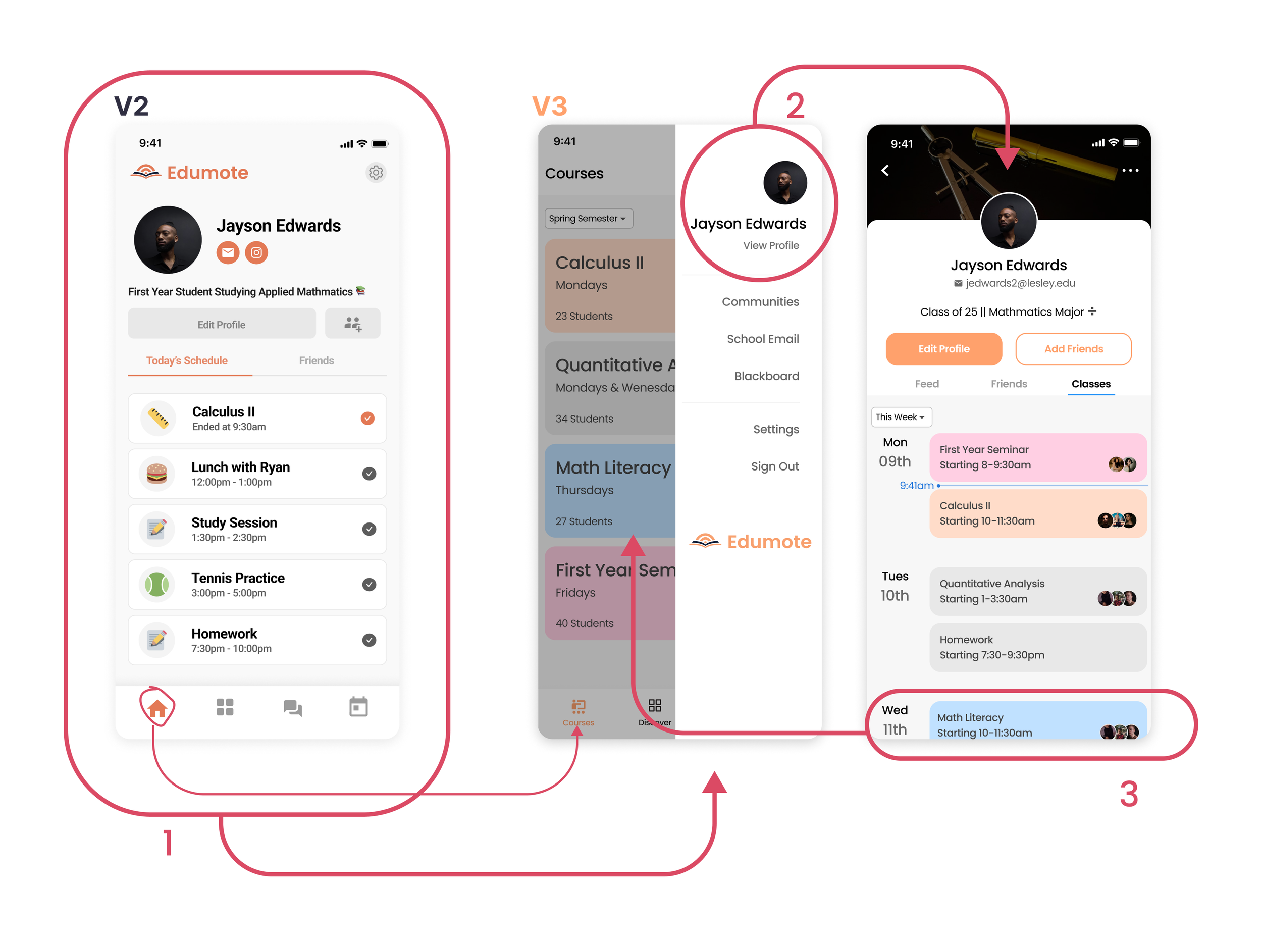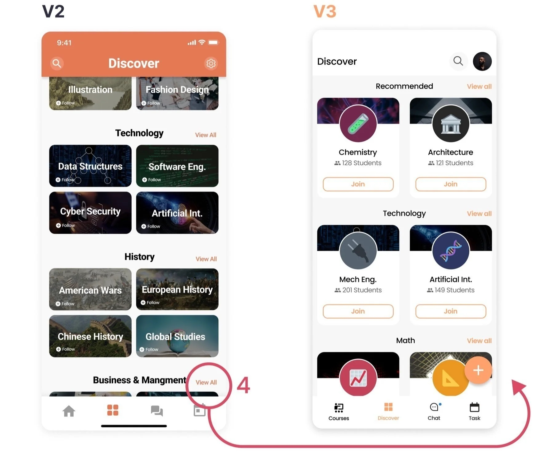 1) The "Profile" page was swapped with "Courses" to address their priority of staying organized with their tasks.