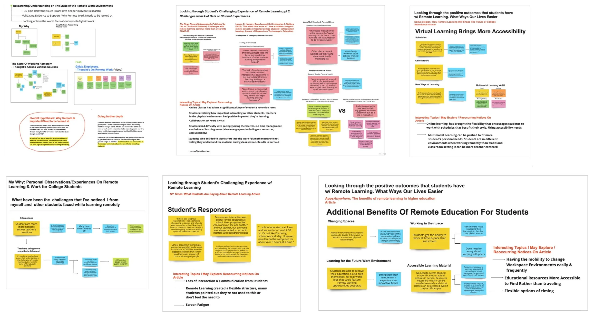 After becoming acquainted with the realm of remote education through the mind-map exercise, I chose to conduct interviews with six undergraduate students from Lesley University. The aim was to understand their current experiences in adapting to remote education.