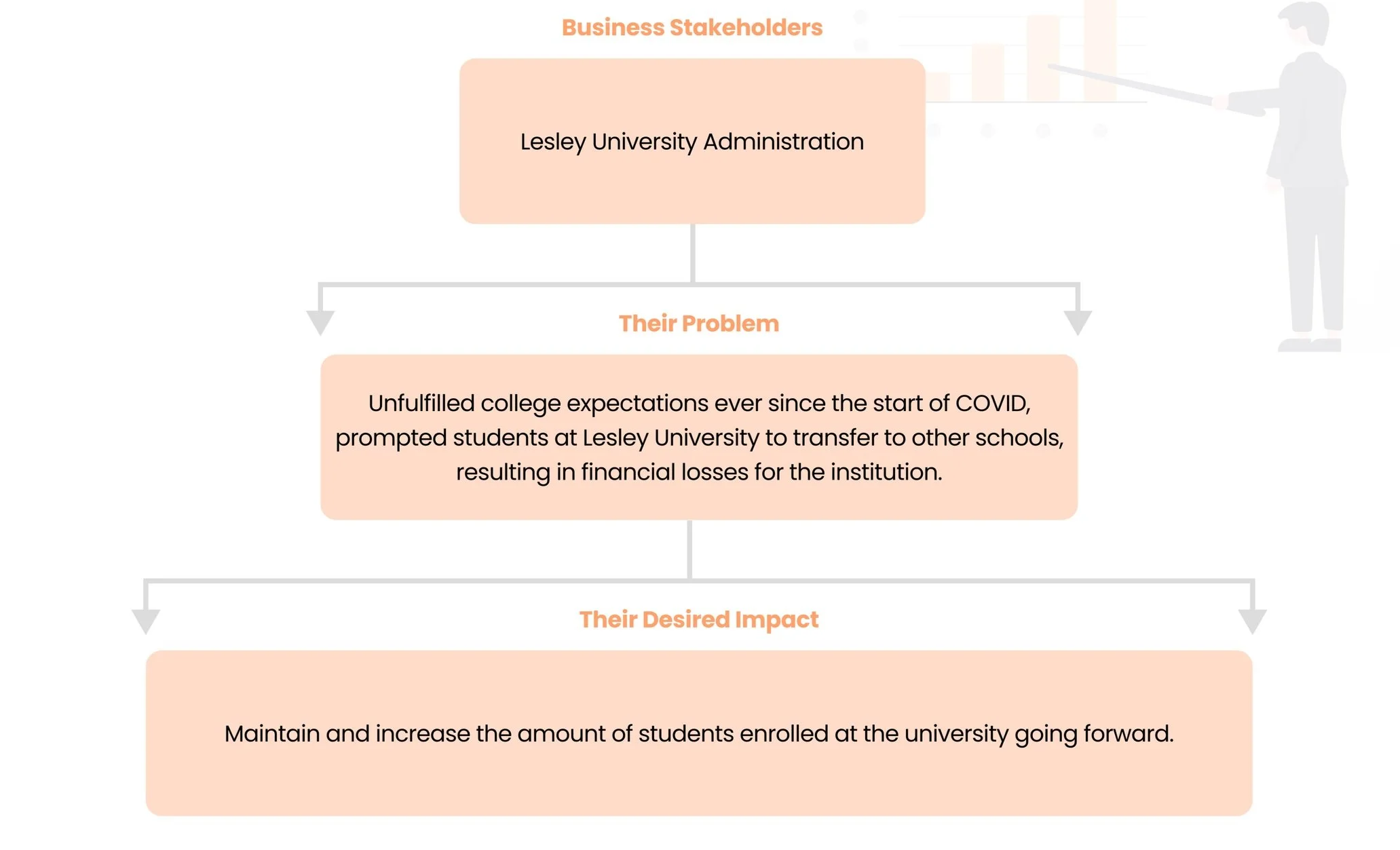 Prior to solving for specific user outcomes, I identified broader goals, such as the business impact. The student goals were my highest priority, but I still had to demonstrate to the administration why they should be interested in taking action. As a result of not being able to meet the student needs, Lesley University lost profit on their enrollment.